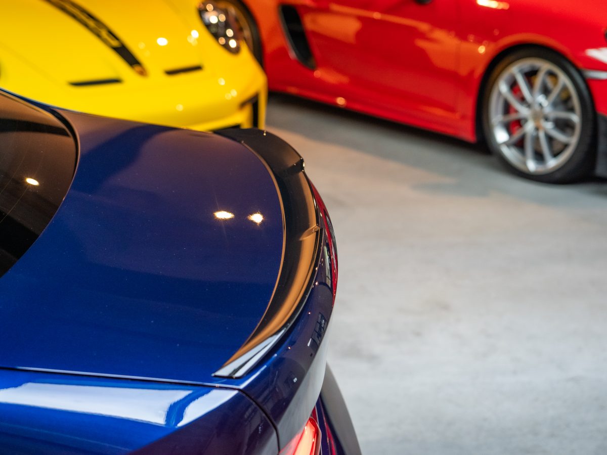 Finished in Tanzanite Blue II with black leather interior.